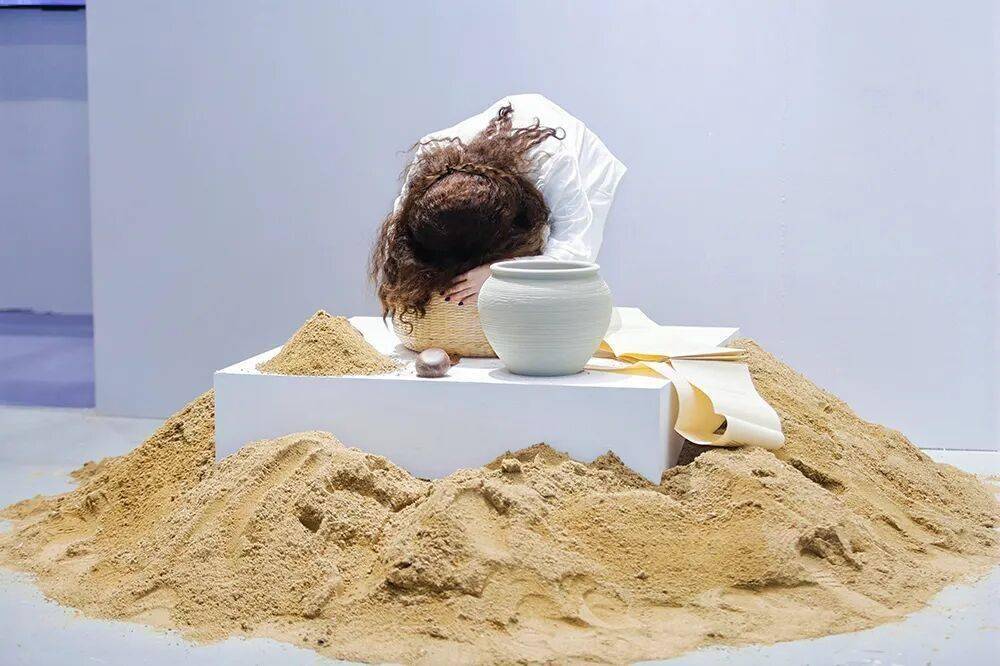 最终,在表演结束时,地面上留下的由言语和物质共同筑成的沙丘,成为了这场证词宣言存在证明的沉默物证。作品隐入了对无限的思辨,探讨了语言与物质、瞬间与永恒、个体与集体之间的复杂关系。
