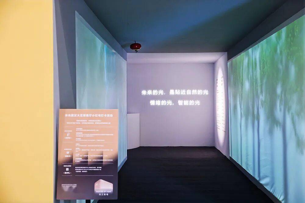 盒子内部是一个智能交互光影剧场,在这里你可以通过呼喊“小沐小沐,给我……的场景”,打造自己心中最喜欢渴望的专属智能灯光场景,如果触碰墙面变换的曲线,还会触发美妙的光影变幻——