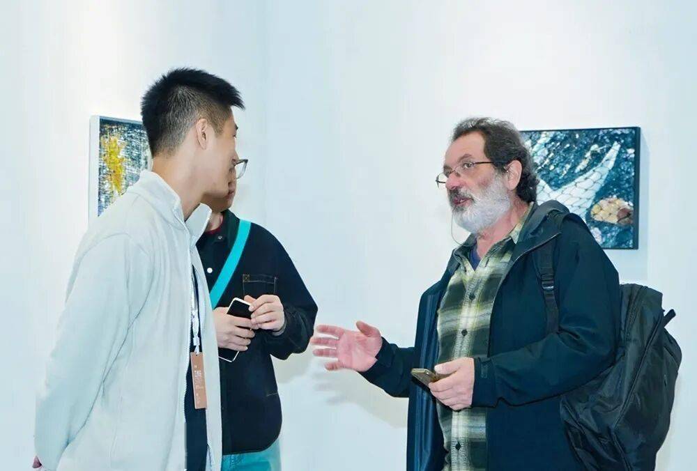 东京艺术大学绘画学院版画系东京印刷媒介学院主理人Michael Schneider教授与参展艺术家李晓巧、陈继烜在大艺博现场交流
