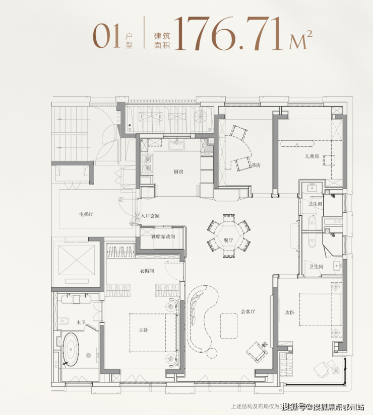 而建面约177㎡01室,则针对性地打造为4房格局,精准契合二胎家庭或三代同堂需求.